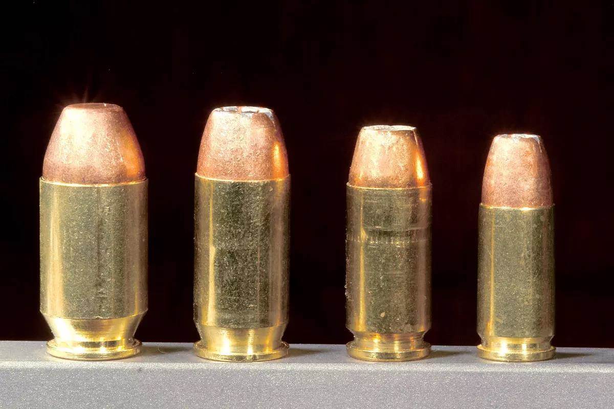 .45 ACP not enough? Consider a .50 GI from Guncrafter Industries! L to R: .50 GI,.45 ACP, .40 S&W and 9mm. (Photo provided by author.)