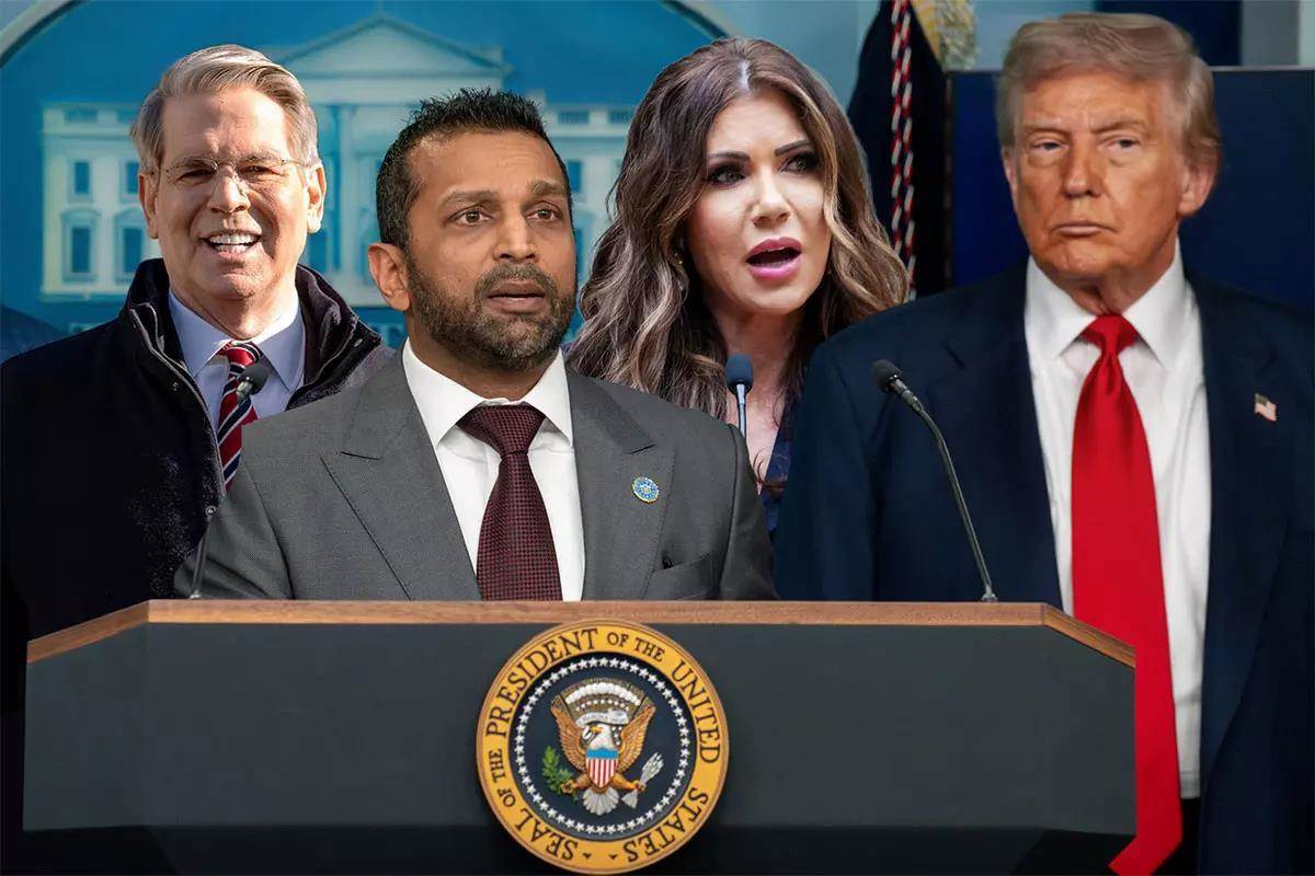 (Photo provided by Shutterstock/Joey Sussman: Patel photo, Shutterstock/Daniel Hernandez-Salazar: Noem photo, Shutterstock/DT phots 1: Bessent photo, Artwork by author)